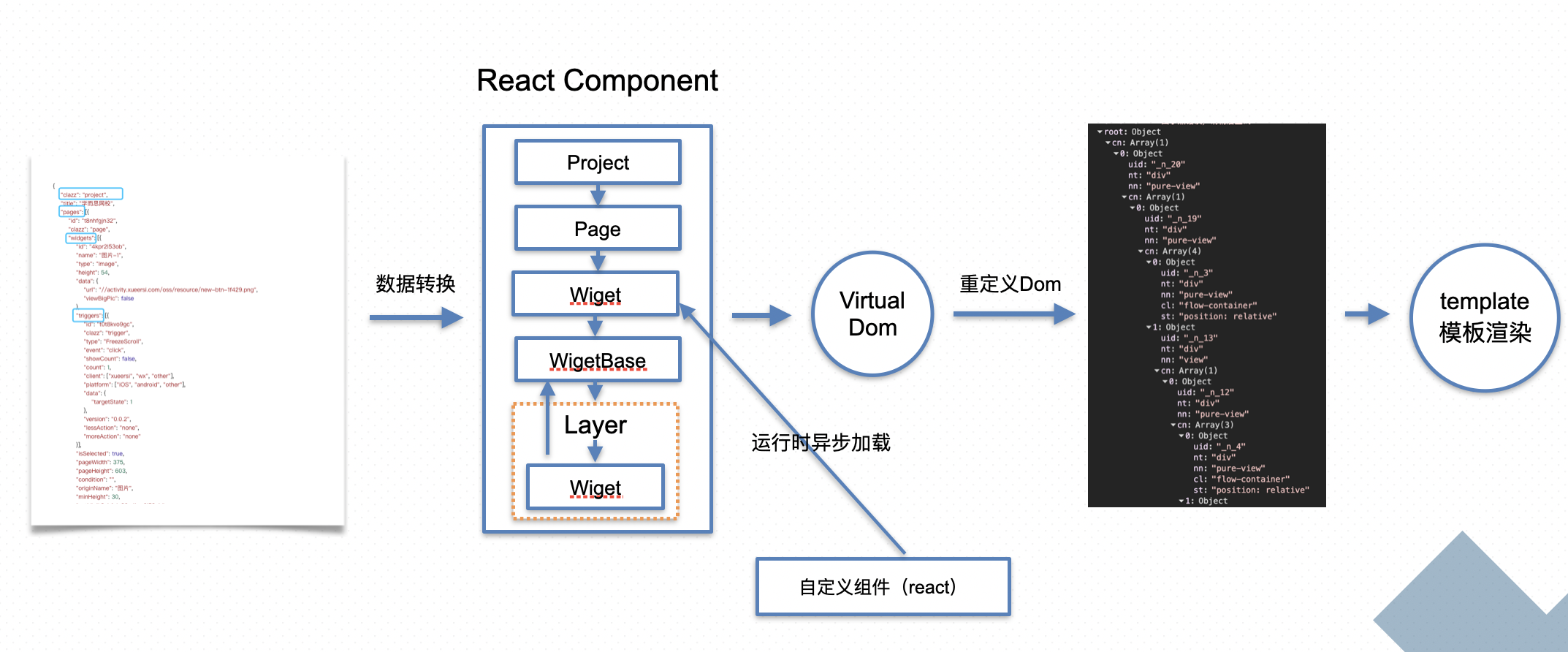 依托与哆啦A梦 (opens new window)编辑平台实现h5页面动态化方案,通过哆啦A梦 (opens new window)生成页面渲染所需要的json数据,小程序端根据json数据进行动态渲染,哆啦A梦 (opens new window)编辑平台随时可以修改页面的结构,一键发布,小程序随时响应, 最终达成:模板 + json配置 = 动态化